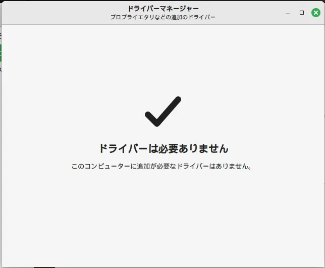今回は不足しているドライバーは、ありませんでしたので、このようなメッセージが表示されました。
