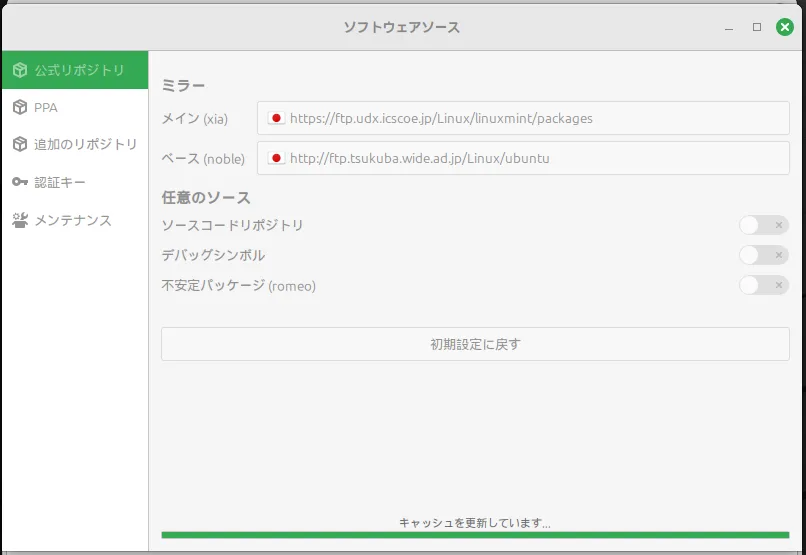 ミラーとは、ソフトウェアやアップデートを配布しているサーバーのことです。物理的に近いサーバーの方がダウンロード速度が速くなるため、国内のサーバーを選ぶことを推奨します。