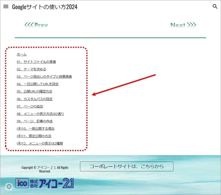 Googleサイトには残念ながらWordPressなどにある、メニューブロックやアーカイブブロックはありません。