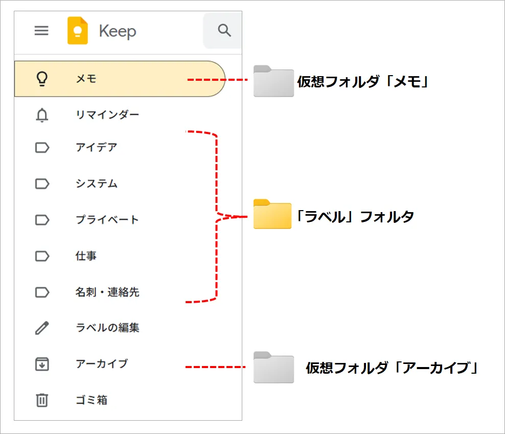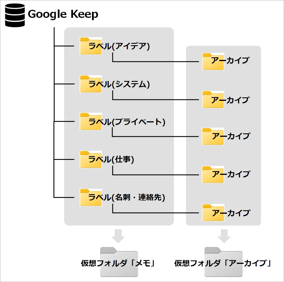 Google Keepのラベルとアーカイブ、これはPCのフォルダに例えるならば、