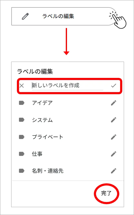 - 「新しいラベルを作成」の部分に任意のラベル名を入力