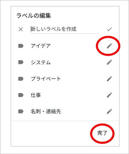 - 変更するラベル右横の鉛筆マークをクリックするとラベル名がアクティブになる