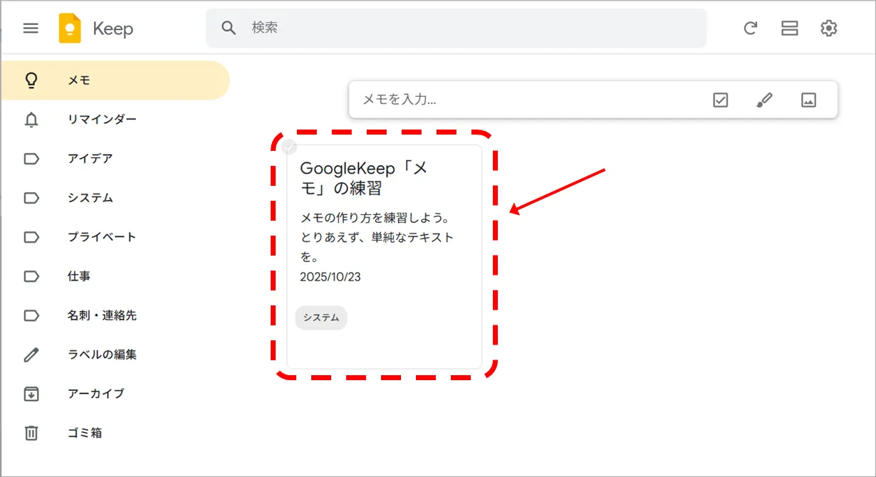 ラベルとはメモの性質ごとに箱を分けるようなイメージで、アーカイブは、進行中用と保管用の仕切りのような役割です。
