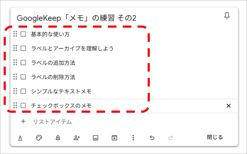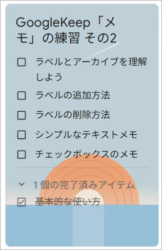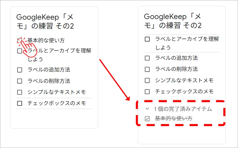 - 実際にリストをチェックをすると、完了済みアイテムとして、下段に表示されます。