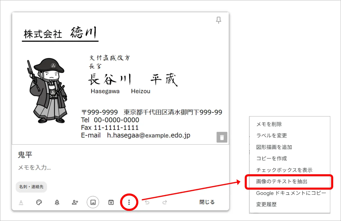 - 画像からテキストを抽出するには、3点メニューより「画像のテキストを抽出」を選択します。