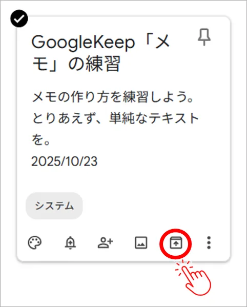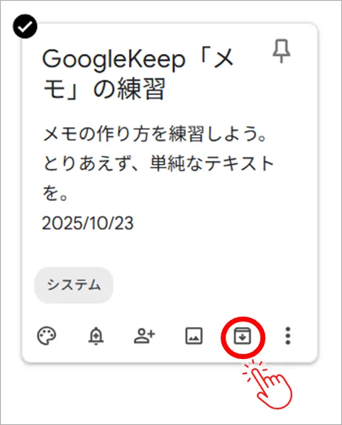 普段は表示させたくない中長期的なメモは、アーカイブをしておくとよいでしょう。